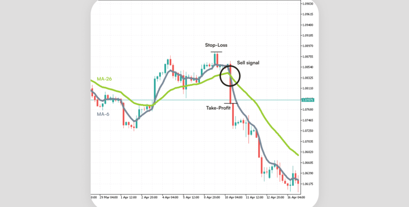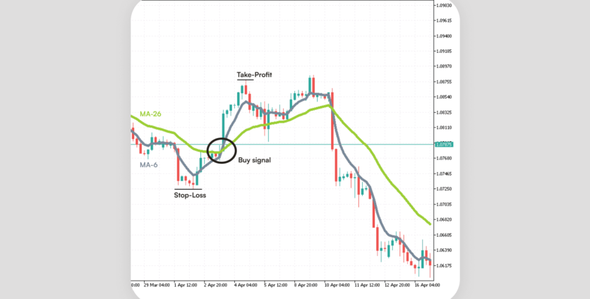- shortly, the 6-EMA crosses the 26-EMA in the same direction as the price.