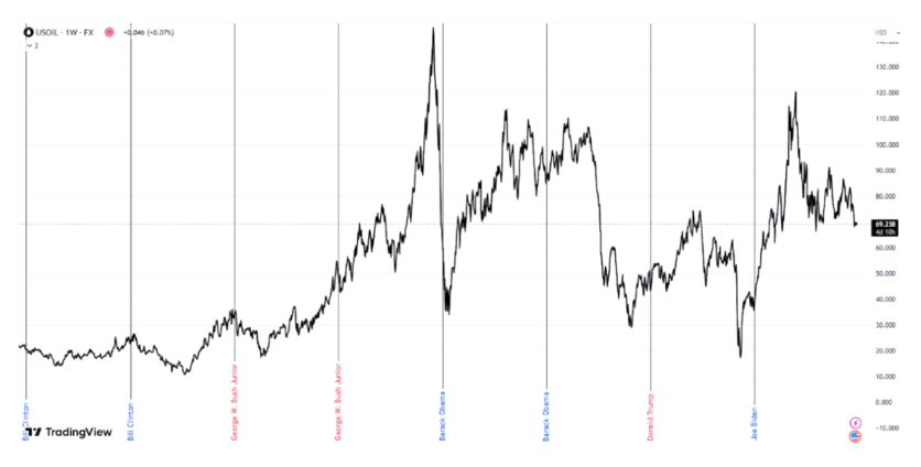 Oil prices hold significant importance in the USA due to the country’s deep-rooted car culture and reliance on personal vehicles. With sprawling suburbs, extensive highways, and limited public transportation infrastructure, many American cities have been designed to prioritize road travel, making driving a necessity for most citizens. This dependence on cars makes gasoline prices a major concern for everyday Americans, directly impacting their cost of living. For that reason, when election times come, oil prices closely monitor politics and react accordingly.