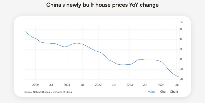 However, after hopes of a quick post-pandemic recovery faded and the real estate bubble continued to deflate, Chinese stock indices continued their rout. Moreover, other problems hit the Сhinese economy, like rampant youth unemployment, industrial overproduction failing to meet local and global demand, and, more recently, political challenges and deflation.