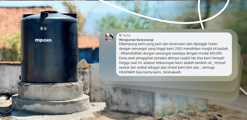 “In our quiet village on the edge of the forest, with great enthusiasm, we built the At-Taubah Mosque in 2003. Alhamdulillah, through community self-help and an initial fund of 400,000 rupiahs, we were able to start the foundation work, and the mosque has served us ever since. However, we still lack a water tank, a proper area for ablution, and prayer mats. We hope that HEADWAY can assist us with these needs. Thank you.”