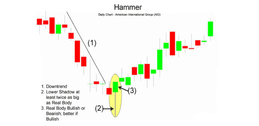 It comes at the end of the downtrend to indicate the possibility of its reversal. The hammer shows that although there was selling pressure during the day, strong buying pressure eventually pushed the price up again.
