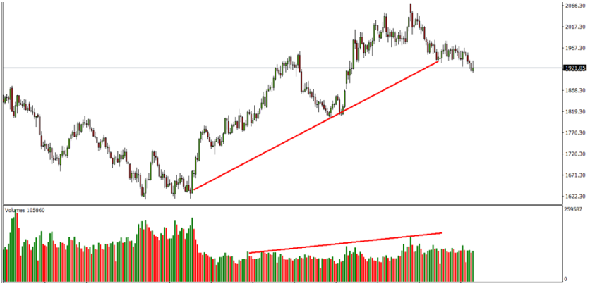 When the trading volume goes up significantly in a specific direction, it can signify that the trend is confirmed. On the other hand, if the trading volume drops significantly while the price moves in a particular direction, it may suggest that the trend is losing its strength.