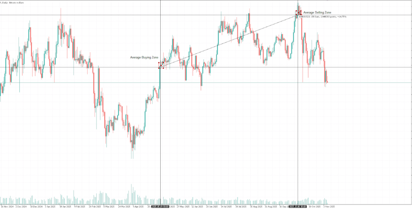 Meet our experienced crypto trader, turning market volatility into opportunity. From May to October 2025, BTCEUR had a 14.5% upside move, significantly evaluating the client’s capital, all while keeping exposure under control.