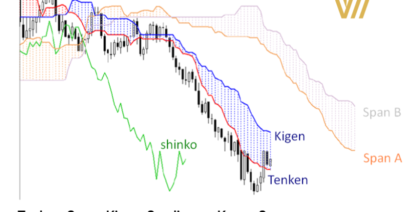 The word “Tenken” in Japanese means the number 9 and the word “Sin” means “river”. It is an arithmetic average of the last 9 candles according to the time frame used. In other words, it is a collection product (the highest price of the last 9 candles + the lowest price of the last 9 candles) divided by 2, which is not shifted forward or backward.