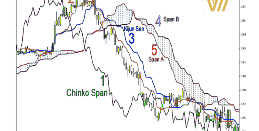 The Ichimoku Kinko Hyo system consists of five elements that work together as a unified system. It is important not to neglect any element or rely solely on a specific one. All elements should be considered together for the system to work correctly. The image below illustrates the five elements of the system, along with a general idea about each element: