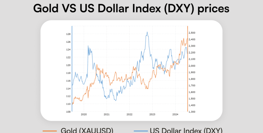 - USD prices. Historically, USD and gold have an inverse relationship when it comes to their prices. This is because gold is denominated in USD on global markets, so a stronger dollar makes gold relatively more expensive for holders of other currencies, reducing demand and, as a result, its value.