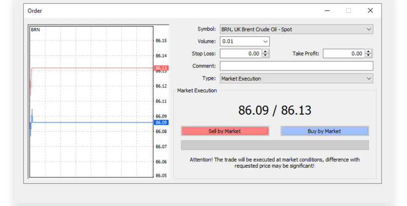 - Choose a type of execution: Market Execution if you want to open a position now/as soon as possible, or Pending Order for later execution).
