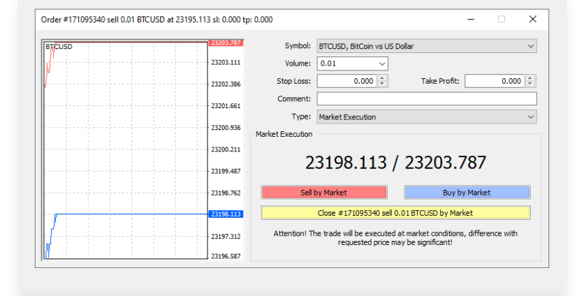 - Click Sell By Market or Buy By Market to open your position.