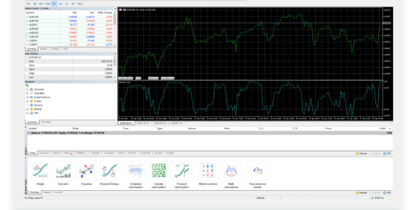 Strategy Tester. A Pro section for experienced traders who want to test and optimize their Expert Advisors.