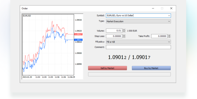 - Choose a Fill policy: Fill or Kill if you need to trade a specific volume (default option), or Immediate or Cancel if you seek execution with the maximum volume available on the market.