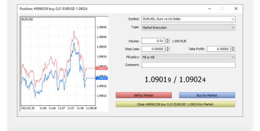- Click Sell By Market or Buy By Market to open your position.