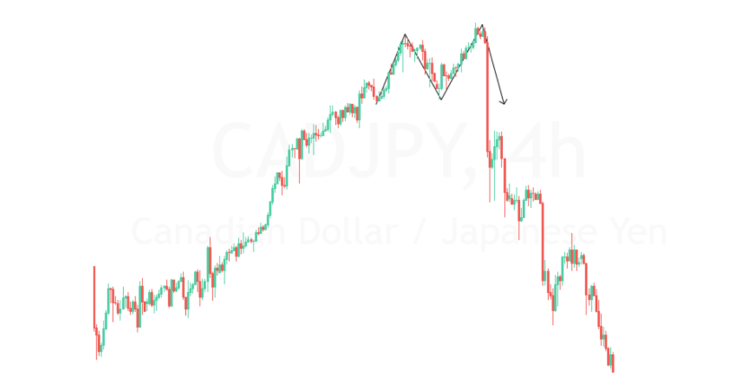 This pattern can be found more often than its headful variation, and for that reason, is not always reliable for locating reversal points. In any case, most of the time it signals just that, like in this CADJPY 4H chart below.