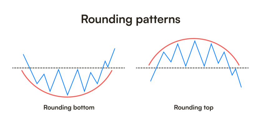 The Rounding Top and Bottom are perhaps the most insightful reversal patterns of all because they combine momentum and market sentiment. When you spot a rounding formation, you can almost surely place your orders against the current trend.