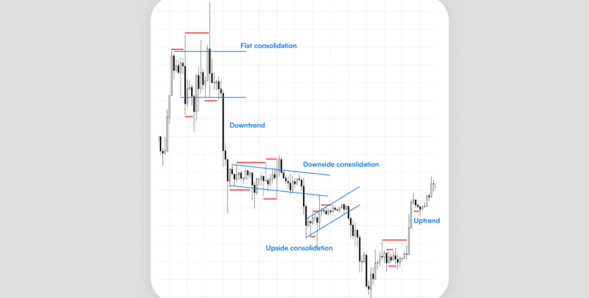 If BTCUSD is making higher highs and higher lows, it is in an uptrend. If it is showing lower lows and lower highs, it is in a downtrend. However, if the cryptocurrency is making the same lows or highs all over again, it is in a consolidation.