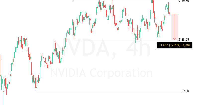 All of the above brought $NVDA to a very interesting trade level, around $128 a share. This also happens to be the lower edge of a 3-month long consolidation. If the price breaks out of it to the downside, it could potentially reach September’s or even August’s lows at $100 – $90 a share.