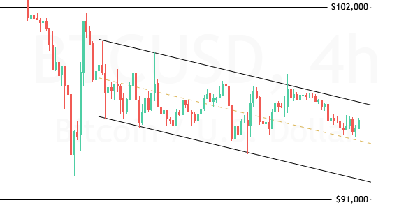Bitcoin has been following a downward channel since the beginning of February. Recently, it has shown signs of strength, as it failed to fall to the lower edge. For now, a cautious short position can be opened from the current levels (TP at $92,000), but you should remember that it can be wiped out anytime by fresh news from the U.S.