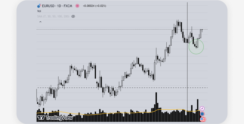 If we were to open here long on the EURUSD, we would have profited starting from the next day, without waiting even a day in the loss zone.